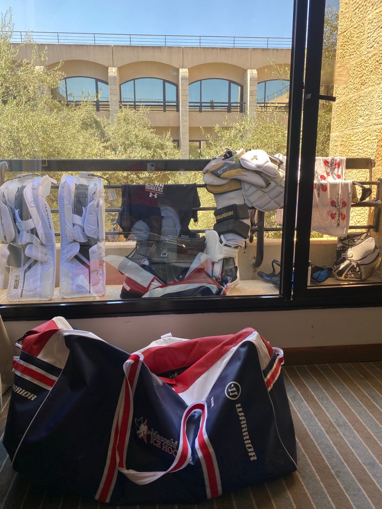Just got back to the hotel from our first practice. It was pretty awesome meandering through the hills of Jerusalem with a hockey arena as the end destination. Really, it is the home of Jerusalem’s professional basketball team which is made obvious by the height of the shower heads in the locker room.
