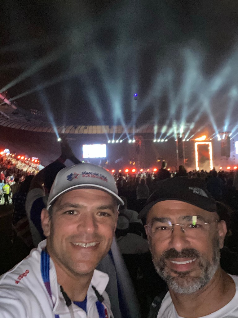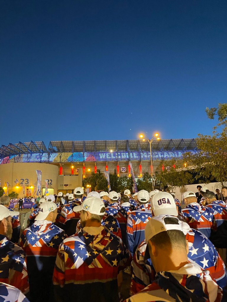 Eventually we marched into the stadium with our respective countries, no different than the Opening Ceremonies at the Olympics. Walking into a packed stadium alongside 10,000 fellow Jewish athletes and being cheered on by over 20,000 spectators who were also mostly Jewish was a powerful experience. The Opening Ceremonies were a pretty big deal in Israel and were broadcast on national TV. Several Israeli pop stars performed. Joe Biden spoke as did several other leaders. The Maccabi flame was lit and fireworks went off. Meanwhile, the athletes mulled around looking to trade team gear. It seemed like the Team USA gear was a hot item for many of the younger athletes from other countries. A young boy who played chess from Turkey wanted my Team USA sweatshirt so now I’m coming home with a Team Turkey warmup jacket!